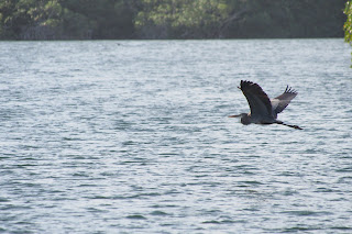 | A Great Bule Heron (Ardea herodias) crosses the Río Hondo. (Photo: Wai Yi) |